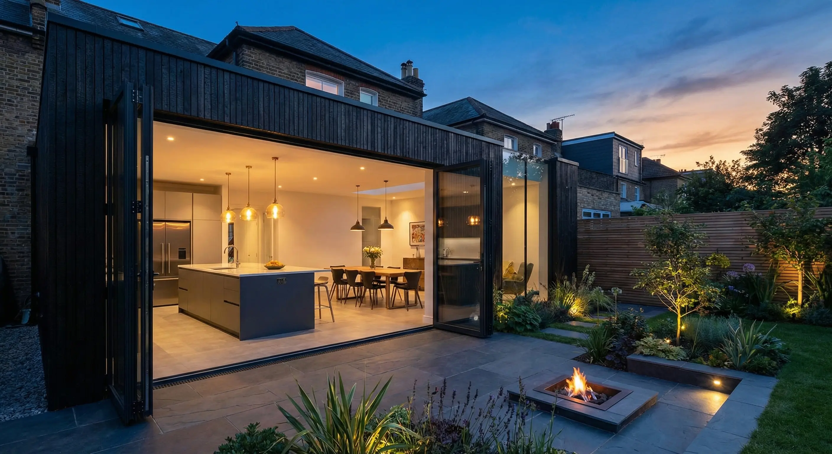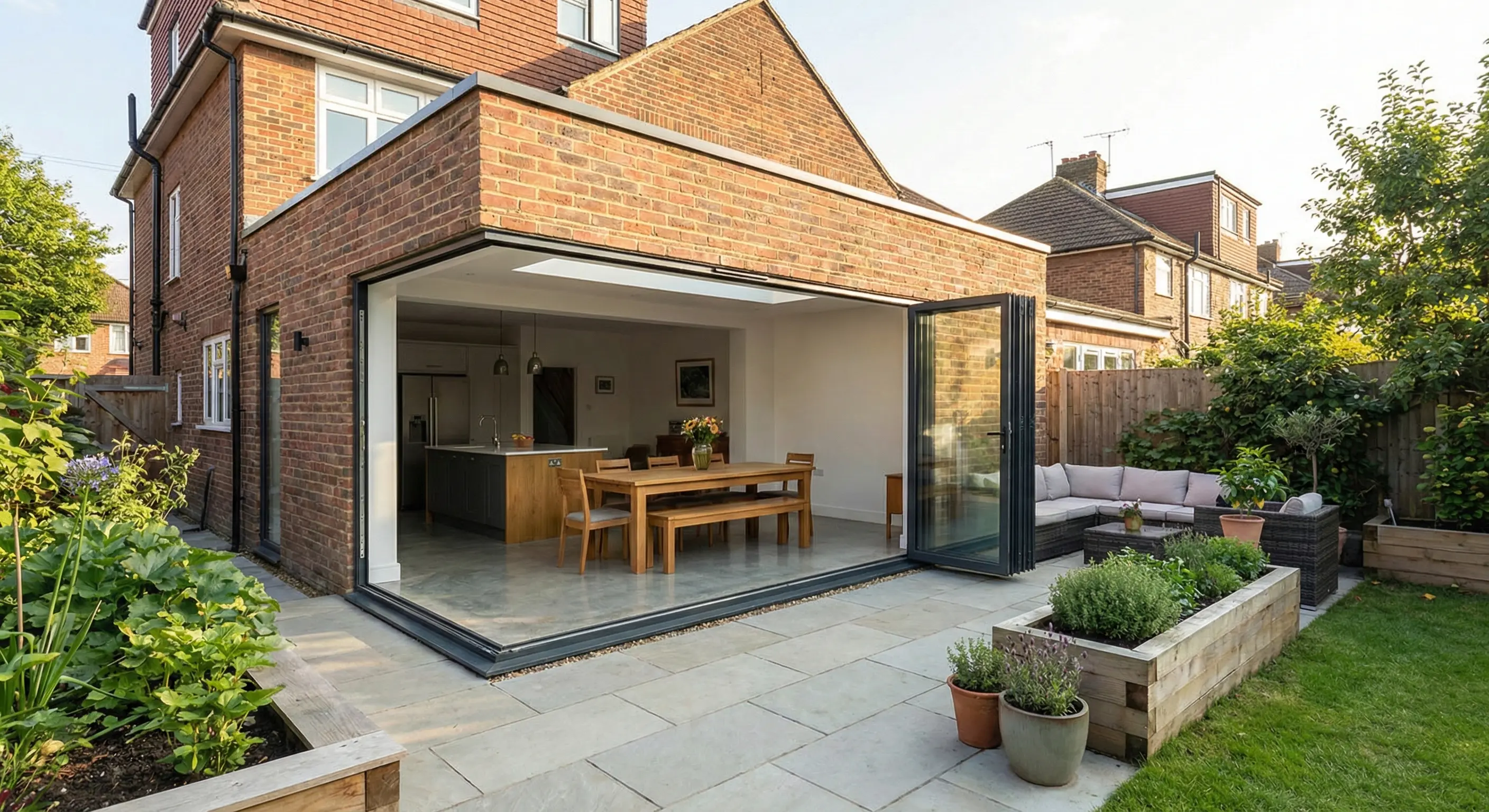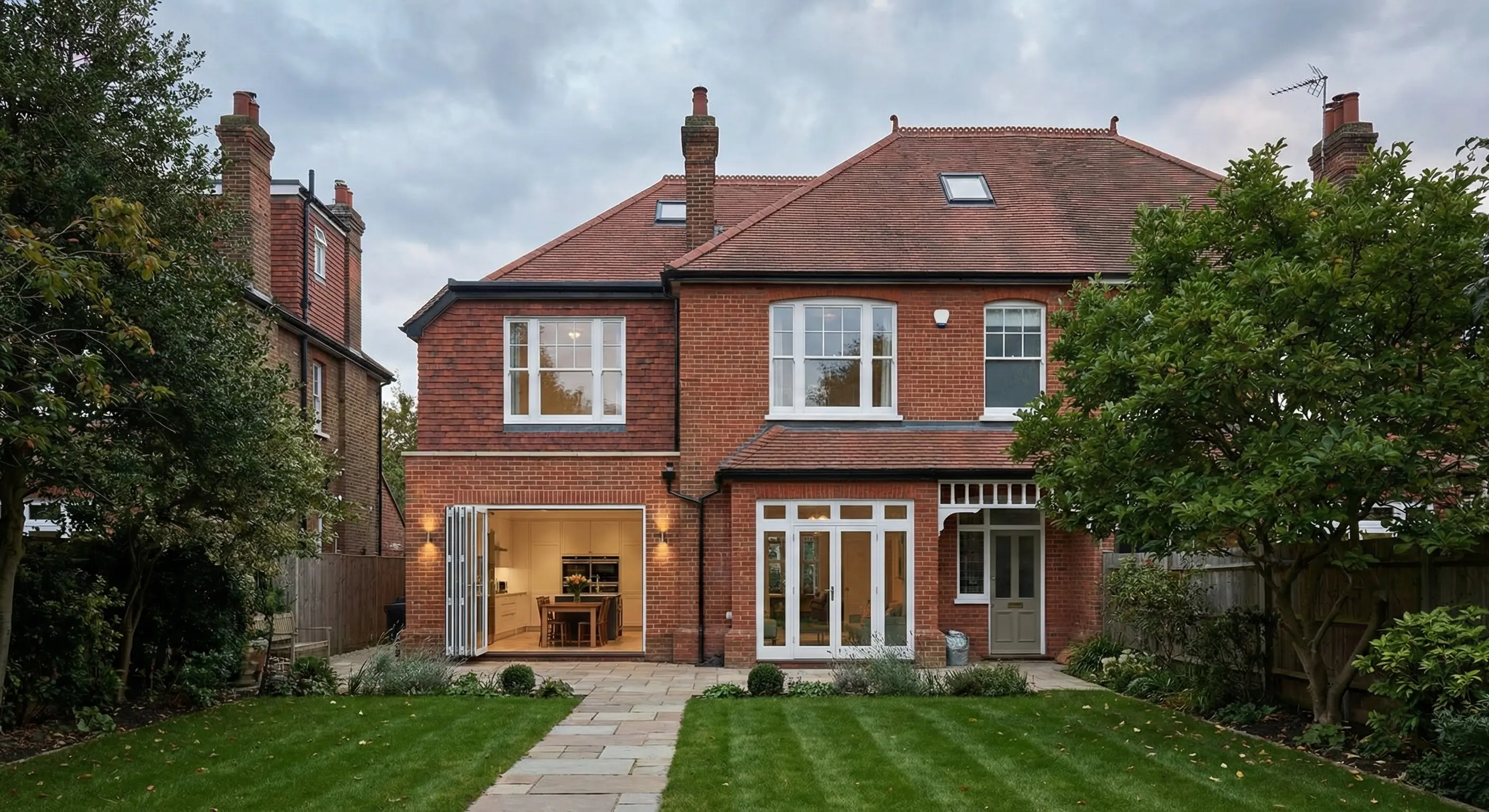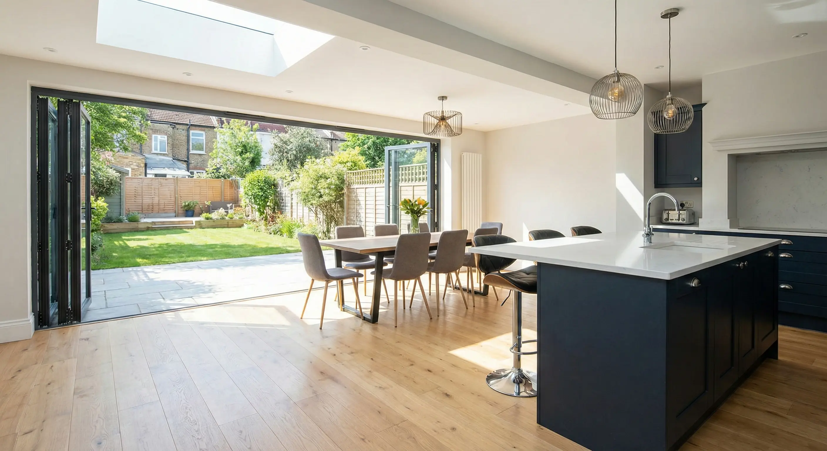 The most popular choice for homeowners, rear extensions open up your ground floor living space, typically creating a larger kitchen-diner or open-plan family area that flows into the garden through bi-fold or sliding doors.